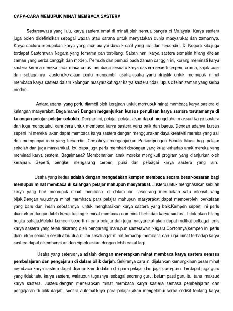 Contoh Karangan Peranan Ibu Bapa Dalam Usaha Memupuk Minat Membaca