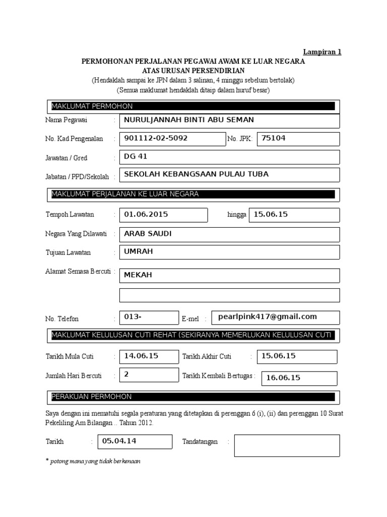 DOC) (661739357) Borang Permohonan Perjalanan ke luar negara ![]()