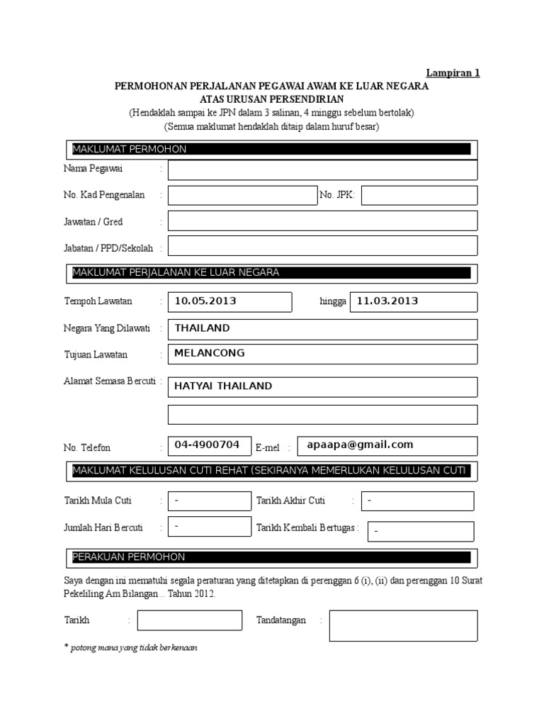 Borang Permohonan Perjalanan Ke Luar Negara Lampiran 1 PDF