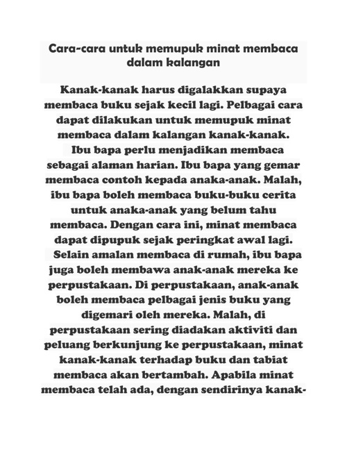 Contoh Karangan BM - Usaha-Usaha individu memupuk amalan membaca
